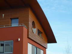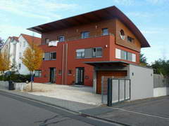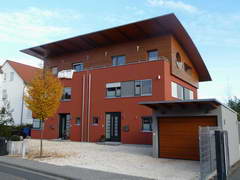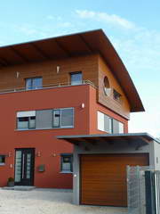 Home | Wir über uns | Projekte | Kontakt Doppelhaus Maurer Reinheim Neubau als Wohnhaus Kennzeichen: - großzügiges Haus im Doppelpack für Architektur - und Designinteressierten Bauherrn - Massivbauweise ( Poroton 45 cm ) - Niedrigenergiebauweise - Integriertem Wintergarten - Dachterrassen mit Blick zum Otzberg - Holzschalung in Lärche - ( Leistenschalung, gehobelt , farbig lasiert ) - 3-gschossiger Wohnreich - Gastherme als Kondensationskessel - Passive Sonnennutzung durch Südverglasungen |