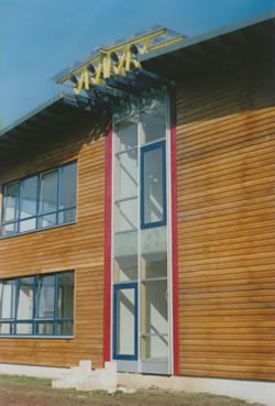 Home | Wir über uns | Projekte | Kontakt Schule in Holzbauweise mit Sonnenenergienutzung Kennzeichen: - Pilotprojekt - Schulgebäude zweigeschossig, aus einheimischem Holz - ökologische Ansätze - passive Sonnennutzung - Planungsbeteiligte: Stöcker und Petersson, Michelstadt - Bauherr: Kreisauschuß des Odenwalkreises - Projekt des "Odenwälder Holzdialoges" - Technische Angaben zum Energieverbrauch siehe unten Verbrauch Wärmeenergie 29,13 kwh/m² = ca. 2,91 l Öl/m² Haben Sie dieses Haus schon einmal gesehen? Gut möglich, mit Sicherheit, wenn sie Schüler oder Lehrer der Ernst-Göbel-Schule in Höchst/Odw. sind. Dort dient es als Gebäude für die Schüler der dortigen gymnasialen Oberstufe. Aber auch aus der "Regionalpost", einer Zeitschrift des "NABU Naturschutzbund Deutschland e.V.", des Umweltbundesamtes und des "Deutschen Verbandes für Landschaftspflege (DVL)" oder aus anderen südhessischen Zeitungsberichten könnten Sie schon etwas über diese Schule efahren haben. Lesen Sie doch einfach den Bericht aus der vor- genannten Zeitschrift "Regionalpost": Eine Schule aus dem Wald - Pilotprojekt Schule Höchst "Ohne unsere Erfahrung beim Bau von Ein- und Zweifamilienhäusern wäre ein Projekt wie die Höchster Schule nicht zu realisieren gewesen", weist Gesine Stöcker auf das Know how hin, das sich auch Architekten für den Holzbau aneignen müssen. Die Erweiterung der Höchster Ernst-Göbel-Schule ganz aus Holz ist eben ein Vorzeigeprojekt der gelung- enen Art. Entstanden sind die Pläne für den zweigeschossigen Erweiterungsbau in den Büros von Diplom-Ingenieur Heinrich Schäfer in Reichelsheim sowie den Diplom-Ingenieurinnen Dörte Petersson und Gesine Stöcker in Michelstadt. Die Zusammenarbeit war nötig, weil ein einzelnes Büro mit dem Projekt überfordert gewesen wäre, wie Gesine Stöcker erläutert. Zehn Klassenzimmer, dazu Toiletten, Lehrerzimmer und andere Räume sowie eine zehn mal zwanzig Meter große Halle für Veranstaltungen jeglicher Art ruhen auf gerade mal 36 Holzstützen. Das ansässige Handwerk konnte beim Bau durch abgestimmte Konstruktionen, Material- und Aus- schreiungsdifferenzierungen eingebunden werden. Zudem dürfte dies jene Schule im Odenwald sein, die aufgrund einiger Raffinessen am wenigsten Heizenergie benötigt. Auf dem Dach befindet sich ein riesiger, mit Plexiglas abgedeckter Kasten, fünf Meter breit und 33 Meter lang. Darin erwärmt Sonnenkraft Luft, die dann ins Gebäude geblasen wird. Somit ist gleichzeitig für Frischluftzufuhr in den Räumen gesorgt. Wenn schon Holz, dann auch zur Isolierung: Glaswolle wurde nur dort in die Wände eingebaut, wo es aufgrund der strengen Brandschutzvorschriften erforderlich war. Ansonsten dämmt Zellulose das als Niedrigenergiehaus ausgelegte Gebäude. Verbaut wurden rund 300 Kubikmeter Holz, das weitgehend aus den Forsten des Odenwaldes stammt. Die Architekten legten die Konstruktion so aus, dass teures Leimholz nur an wenigen Stellen eingebaut werden musste. Ansonsten tat es ganz normales, auf 18 Prozent Restfeuchte getrocknetes Bauholz. Zusammen mit Beplankung, Schalung oder Dämmung wurden etwa 1000 Festmeter Holz verarbeitet. Die Höchster Schule kam trotz aller architektonischer Rafinessen auf exakt 1760 Mark reine Baukosten pro Quadratmeter. Konventionell wäre das Gebäude zum Preis von 2000 bis 2200 Mark zu erstellen gewesen. Aus: Regionalpost September 2001, Katja Ewald und Bernd Blümlein Daten zu den einzelnen Energie- und Ressourceneinsparmaßnahmen: Baubetrieb Durch die Holzkonstruktion konnte gegenüber einer konventionellen Massivbauweise ca. 6O % Energieeinsatz und damit verbunden entsprechend CO2 eingespart werden. Grundlage der Schätzung sind vergleichbare Untersuchungen. Eine wissenschaftliche Untersuchung hierzu wird beauftragt. Wärmedämmung , Thermische Solaranlage, Lüftungskontrolle Die Dachbereiche sind mit 24 cm , die Wände mit 18 cm, der Boden mit 18 cm Wärmedämmung versehen, in Verbindung mit dem Solarkollektor konnte ein Heizölverbrauch von ca. 3 Liter je m2 Grundfläche gemessen werden. Bei der Solaranlage handelt sich um eine luftgeführte gebäudeintegrierte Großanlage mit ca. 165 m2. Sie dient weiterhin zur kontrollierten Be- und Entlüftung. Messbasis: Wärmemengezähler an Hauptzuleitung der Fernleitung. Verbrauch 437OO KWh von Mitte Sep. 2OO1 bis Mitte Mai 2OO2. Schulfläche 15OO m2, Ansatz : 1 Liter Heizöl = 1O kWh Energieinhalt (bei 9O% Wg) 437OO KWh: 15OO m2 = 29,13 KWh/m2 = ca. 2,91 l je m2 Kraftwärmekopplung KHKW Es sind insgesamt 5 KHKW Anlagen mit 5,5 KW thermischer und 11 KW elektrischer Leistung installiert., somit ist optimale Brennstoffnutzung gegeben, der Stromüberschuß wird mit in den anderen Schulgebäuden verbraucht. Wassereinsparung 25O Schüler verbrauchen je Tag ca. 25O x 5l Wasser , ergibt je Tag 1,25 m3, ergibt bei ca. 225 Schultagen ein Verbrach von ca. 281 m3 im Jahr. Dieser Verbrauch wird durch die Regenwassernutzungsanlage völlig abgedeckt. Steuerung und Regelung Die Solarkollektoranlage ist computergesteuert und mit der konventionellen Heizanlage verbunden, Vorrang hat die Solarkollektoranlage. Bau- und Betriebskosten Die Baukosten lagen unter DM 19OO, sie sind damit als äußerst günstig zu bezeichnen, durch die geringen Energiekosten ist ein sehr wirtschaftlicher Betrieb möglich. Sonstiges Gründachbereiche, ökologische Bauweise, Energiesparbeleuchtung, Eine Photovoltaikanlage ist geplant Veröffentlichungen: - OHZ 27.03.2001 - OHZ 21.04.2001 - Darmstädter Echo April 1996 - Regionalpost 2001 - Frankfurter Rundschau 11.10.2000 - AiD, Bonn, Heft 4/2003 |