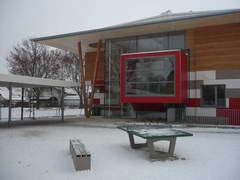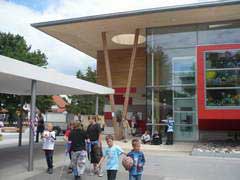 Home | Wir über uns | Projekte | Kontakt Schule in Holzbauweise mit Sonnenenergeinutzung Kennzeichen: - Schulgebäude zweigeschossig, aus einheimischem Holz - ökologische Ansätze - Niedrigenergiebauweise - Bauherr: Verbandsgemeinde Guntersblum - Technische Angaben zum Energieverbrauch siehe unten: Haben Sie dieses Haus schon einmal gesehen? Gut möglich, mit Sicherheit, wenn sie Schüler oder Lehrer der Schule in Guntersblum-Dolgesheim sind. Baubeschreibung Kurzbeschreibung Das Gebäude ist für eine 2-zügige Grundschule mit Ganztagesangebot einschl. dem notwendigen Verwaltungsbereich und einem Mehrzweckraum, gemäß dem geforderten Raumprogramm mit ca. 1385 m² BGF geplant. Es hat einen systematischen und regelmäßigen Aufbau und besteht aus 9 Achsen a 4,125 m, somit sind typisierte und vorgefertigte Bauteile kostengünstig einzusetzen. Die Schule ist zweigeschossig und als doppelbündige Anlage konzipiert. Im Erdgeschoss befinden sich neben einem überdecktem Zugangsbereich die Räume für Verwaltung, Ganztagesbereich mit Mensa, Küche und Mehrzweckraum, sowie die Nebenräume. Das UG des bestehenden Schulgebäu-des wird weiterhin für Technikräume verwendet und ist konzeptionell und konstruktiv berücksichtigt. Baubetrieb Durch die Holzkonstruktion konnte gegenüber einer konventionellen Massivbauweise ca. 6O % Energieeinsatz und damit verbunden entsprechend CO2 eingespart werden. Grundlage der Schätzung sind vergleichbare Untersuchungen. Architektur Der langgezogene rechteckige Baukörper ist mit einem flach geneigten Satteldach versehen. Dachüberstände zum Schutz der Fassade sind als integrierte Zusatzelemente angebracht. Der darunter liegende Baukörper ist kompakt angelegt, wird jedoch in den Bereichen der Sonderfunktionen wie Mensa, Mehrzweckraum und Eingangsbereich "transparent" und "offen" dargestellt. Die Fassaden sind entsprechend den Funktionen (Verwaltung, Klassenräume, Mensa) gegliedert und als solche ablesbar. Unterstützt wird dies durch die gewählte Konstruktion des Bauwerkes als Systembau, die Fassade ist mit hinterlüfteten farbigen Holzzement-Platten und Lärche- Schalung ausgeführt. Die Architektur und Gestaltung ist mit den Sanierungsmaßnahmen der Turnhalle in Einklang gebracht, d.h Materialien, formale Bauteile und Farben sind aufeinander abgestimmt. Konstruktion Das Bauwerk ist als Systembau mit hohem Vorfertigungsgrad von Bauelementen konzipiert. Vorherr- schend sind vorgefertigte Bauteile, sowohl als Massiv- wie auch als Holzleichtelemente mit inte-grierten Wärmedämmungen. Referenzobjekte: ( s. Schulplanungen in Höchst und Beerfelden Odw.). Energieeffizienz / Architektonisches - Energiekonzept Das Gebäude ist bedingt durch seinen kompakten Baukörper ( geringe Hüllflächen, bei großem Rauminhalt) und den Möglichkeiten wirksamer Wärmedämmlagen im gesamten "Hüllbereich" ( hinter-lüftete Dämmungen) äußerst energieeffizient auszuführen. Das Gebäude entspricht mit einem Heizenergieverbrauch von 0,24 W/m² K.(HT-Wert) den Niedrigenregiekriterien und kann bei Einbau einer kontrollierten Lüftung den Passivhaus-Kriterien entsprechen. Eine entsprechende Nachrüstung ist planerisch optional vorgesehen, durch Austausch von Füllungen in den Glasfassaden für dezentrale Raumlüfter als Gegenstromaggregate Es wurde bei der Planung darauf geachtet das eine optimale natürliche Belichtung möglich ist ( Fensterflächen, Dachflächenfenster, Ausrichtung, Gebäudekonfiguration ) um die elektrische Beleuchtung im Tagesbetrieb zu minimieren. Energieeffizienz / Sommerlicher Wärmeschutz Zur Regulierung von Wärmeenergie im Winter, wie auch zur Regulierung des sommerlichen Wärmeüberangebotes, sind zur Pufferung die Geschossdecke als Betonhohlkörperdecke und die Flurwände als schwere Klacksandsteinwände als Ausgleichsmassen ausgeführt. Wobei die Gesamtkonstruktion im Wesentlichen als Holzbau konzipiert ist. Über elektrisch temperaturgeregelte Dachflächenfester wird die sommerliche Überschussenergie abgeführt, nächtliches öffnen zur Kühlung mittels nachströmender kühler Luft ergänzen den sommerlichen Wärmeschutz. Alle Dachdämmungen bestehen aus Holzfaser- bzw. Cellulosedämmung zur Gewährleistung eines besseren sommerlichen Wärmeschutzes durch die Speicherfähigkeit des Materials gegenüber sonstigen Dämmungen ( Phasenverschiebung, ) . Die Dacheindeckung erfolgt mit einem weißen Trapezblech zur Reflektierung der Einstrahlung ( ca. 90 % ) sowie einer großen Hinterlüftungsebene mit Firstentlüftung zur Herstellung einer selbsttätigen Ventilation. Energieeffizienz / Regenerative Energienutzung Der Standort in Rheinhessen ( historischer Weinbau ) gehört zu den sonnenreichsten Gebieten in Deutschland, es bietet sich daher eine Nutzung der Sonnenenergie besonders an. Auf der Dachfläche von ca. 800 m² wird eine große Fotovoltaikanlage (ca.30 - 80 KW/ peak ) eingerichtet. Der geringe Wärmebedarf wird mittels eines kleinen BHKW ( Gas ) von 15 KW thermischer und 5 KW elektrischer Leistung erzeugt. Alle Beleuchtungskörper werden als Niedrigenergieleuchten ausgeführt. Ökologie / Nachhaltigkeit / Baumaterial Das Bauwerk besteht im wesentlichen aus Holz- bzw. Holzbaustoffen ( Wände, Dächer, Fenster, Türen, Fassadenverkleidungen im Innen- und Außenbereich . Die Wärmedämmungen werden auf der Basis von Holzfaserstoffen ausgeführt. Die Fußböden im wesentlichen mit Linoleum belegt, zur Minimierung von Farben ( schadstofffrei ) ist das Gebäude zum Wetterschutz mit großen Dach-überständen ( natürlicher Holzschutz ) ausgeführt. Somit stehen ökologische und natürliche Baustoffe im Mittelpunkt, die besonders kindgerecht sind. Diese Materialien sind bei einem Rückbau nicht nur entsorgungsfreundlich, sondern bei der Her-stellung und dem Verbau mit sehr geringem Energieeinsatz einhergehend. Wirtschaftlichkeit Durch den kompakten Baukörper, die Zweigeschossigkeit in Verbindung mit der zweibündigen Anlage, ergibt sich ein gutes Verh