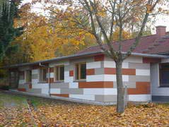 Home | Wir über uns | Projekte | Kontakt Anbau Kiga Beerfurth Reichelsheim - Beerfurth "Bunte Holzschachtel" s. Zeitungsbericht Neubau als Anbau für Kinder unter 3 "U3 Krabbelkinder" Kennzeichen: - Anbau unter Berücksichtigung des Bestandes wie Fenster, Türen, daher Baukosten ca. 20 % unter den Vorgaben - Holzständerkonstruktion, auf Bodenplatte - Niedrigenergiebauweise - Ökologische Baustoffe - Flach geneigtes Dach - Fassaden farbige Holzementplatten - Holzschalung in Lärche - Innenbereich Holzvertäfelungen - Passive Sonnennutzung durch Südverglasungen - " Viel natürliches Licht " Haben Sie dieses Haus schon einmal gesehen? Gut möglich, mit Sicherheit, wenn sie Eltern mit Kinder sind und in Reichelsheim-Beerfurth wohnen. Nach einer sehr kurzen Genehmigungs- und Planungsphase konnte bereits nach wenigen Wochen Bauzeit Richtfest für den Anbau an den Kindergarten Beerfurth gefeiert werden. Denn schnell gehen soll es ja, so dass die "Krippenkinder" das neue Angebot möglichst bald nutzen können. Der Anbau besteht aus drei Bereichen, einem Schlafraum (Krippenraum), eine Aktivzone zum krabbeln und einem Serviceraum zum windeln. Das Gebäude ist als Holzrahmenbau konzipiert, was den Vorteil einer schnellen Bauzeit (Trockenbau) hat. Es ist darüber hinaus als "Niedrigenergiehaus" und nach baubiologischen Gesichtpunkten ausgelegt. Der Energiebedarf zur Beheizung des eingeschossigen Baukörpers von ca. 5x16 m dürfte demnach nur ca. 250 -300 l Heizöl pro Jahr betragen! Diese Qualitäten sind zeitgemäß und entsprechen gerade hinsichtlich der natürlichen Baumaterialwahl den Bedürfnissen von Kleinkindern bezüglich einer gesunden "Wohnumgebung". Die Außenfassaden folgen den vorgenannten inneren Funktionen, so ist der Ruhebereich mehr geschlossen (passiv) hingegen ist der Krabbelbereich (aktiv) mit einer großen Eckverglasung versehen, die allerdings auch zur Belichtung des vorhandenen Gruppenraumes des bestehenden Kindergartens dient. Der Untergrund der Baufläche war wenig tragend und mit einem Wasserlauf durchflossen, dies war den Architekten bekannt, sodass für die wasserdichte Betonwanne die eingebaut werden musste, keine Mehrkosten gegenüber den Schätzungen entstanden. Das Bauwerk wird mit modifizierten Holzpaneelplatten verschalt. Entsprechend dem Gebäudetyp "Kindergarten" sollen hier farbliche Akzente gesetzt werden, die das spielerische, experimentelle und kindliche auch nach Außen zeigen - eine bunte "Holzschachtel" - so der Architekt Heinrich Schäfer. Die gemeindlichen Gremien waren von der Qualität des Planungsentwurfes überzeugt und haben sich ohne zu zögern für die höherwertige Bauweise und den Vorschlag des Architekten entschieden. Veröffentlichungen: - |