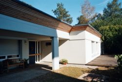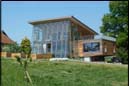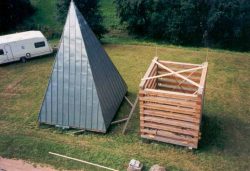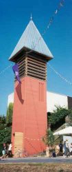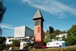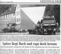 Home | Wir über uns | Projekte | Kontakt "Kirche mit Turm und Gemeindehaus" Kennzeichen: - Sanierung - Betonsanierung - Neugestaltung - Neubauteile - Gründächer - Kirchturmaufstockung als Stiftungsprojekt (Hessentag 1998 Erbach) - Projekt noch nicht abgeschlossen Der Auftrag wurde 1998 durch den Kirchenvorstand erteilt, nachdem einige Architekten Ihre Konzepte vorgestellt hatten. Beauftragung eines Schadensgutachtens Haben Sie dieses Gebäude schon einmal gesehen? Allgemein Die Kirche mit Gemeindehaus und Kirchturm wurde 1963 eingeweiht. Die Gesamtanlage war als Sichtbetonkonstruktion mit Mauerwerksbereichen konzipiert, sämtliche Dächer waren als Flachdächer ausgeführt. Die Architektur war anspruchsvoll und lag im Trend der Zeit, ich würde sie auch in diesem Zusammenhang als sehr gelungen bezeichnen. Eine Besonderheit sollte nicht unerwähnt bleiben, die Glocken (3) waren im Kirchturm mit 3O cm Betonwänden umgeben, es gab auch einige Schallschlitze. Damit waren die Glocken als solche nur mit Lautsprecheranlage vom Kirchendach wahrnehmbar, diese wurde aber noch rechtzeitig vor der Einweihung montiert. Baulicher Zustand Der hohe Sanierungsbedarf ergab sich aus der oben genannten Bauweise, die Dächer mehrfach undicht die großflächigen Betonbauteile waren ohne Wärmedämmung ausgeführt. Die Folgen: Feuchtigkeit, Rissbildungen, Abplatzungen bis zur Armierung, an den Innenwänden teilweise Schimmelbildungen. Hinzu kam der hohe Energiebedarf ( 2O.OOO l Heizöl p.a.). Aber auch die Haustechnik, Heizung, Wasser und E-Installation waren zum Teil erneuerungsbedürftig (Heizungsleitungen durchgerostet). Treppenbereiche hatten sich abgesenkt, kurzum den Gesamtzustand fanden Pfarrer und Kirchenvorstand als nicht mehr tragbar. Schadensgutachten Am Anfang unserer Arbeit stand eine Auflistung aller Schad- und Schwachstellen, einschl. Untersuchung der Heizung, Wasser. Elektrik, Lüftung, auch unter baurechtlichen und brandschutztechnischen Gesichtspunkten mit Dokumentation durch: Fotos, Betonuntersuchung durch Korbonmessung, Eintragung in Werkpläne M 1:5O, Beschreibung Maßnahmenkonzept Daraus erfolgte ein Maßnahmenkonzept in Verbindung mit einem Gestaltungskonzept und einer daraus folgenden Kostenschätzung dargestellt mittels: Modell, Entwurfsplänen, Kostenschätzung Freigabe Diese Konzept wurde dem Kirchenvorstand vorgestellt, bei einem zusätzlichen Termin erfolgte die Vorstellung mit Herrn Pfarrer Reeh und dem Bauauschuß bei Herr Kirchenbaudirektor Blechschmidt in Darmstadt. Es erfolgte die Freigabe und Zustimmung. Der Bauantrag wurde gestellt. Aus Finanzierungsgründen wurde das Gesamtvorhaben in 3 Bauabschnitte unterteilt und zeitlich gestreckt. Sanierung und Neugestaltung Neben den bautechnischen Notwendigkeiten wie vor beschrieben, wurde von uns ein Gesamtkonzept erarbeitet. Dies beinhaltete unter anderen eine vorsichtige Neugestaltung der Kirche , des Gemeindehauses, den überdeckten Freianlagen, des Pfarrhauses und des Kirchturmes. Denn der notwendige Eingriff in die Bausubstanz lies dies als sinnvoll erscheinen, hinzu kam, dass keine Firma bei einer reinen Betonsanierung eine längere Gewährleistung als 2 Jahre gab. Von daher erschien es uns als erforderlich eine konsequente, alles umfassende Maßnahme einzuleiten. An den Betonbauteilen , Ziegelwänden und Dächern war eine einfache Sanierung mit Ausbesserungen und Anstrichen nicht sinnvoll, fehlte doch die gesamte Wärmedämmung. Die Flachdächer waren schon zum Teil 4 mal erneuert. Umsetzung Das Flachdach des Pfarrhauses wurde mit einem Flach geneigten Bogendach mit Überstand ausgeführt. Alle sonstigen Flachdächer wurden als Gründächer ausgeführt und mit einem 5O cm vorspringendem Gesims versehen, dies zum Schutz der Fenster und Fassaden. Alle Wände würden von Außen mit 12cm Wärmedämmung versehen. Die Sichtbetonbereiche der überdachten großen Treppenanlage wurden fachgerecht saniert, allerdings auch mit Gesimsabdeckungen zum Wetterschutz versehen. Kirchturm Der Kirchturm wurde wie Anfangs beschrieben seiner Aufgabe das "Geläut" über das Dorf und seiner Ortsteile zu verteilen nicht gerecht. Unser Konzept sah daher eine Erhöhung des Turmes vor, indem der Betonturm durch einen Holzaufbau erhöht wurde und die 3 Glocken auf das Flachdach des Betonturmes erhöht aufgestellt werden sollten. Dies erforderte jedoch einen Kostenaufwand von ca. 15O.OOO €; das Geld war nicht vorhanden. Zu dieser Zeit fand der Hessentag 1998 in Erbach statt. Im Rahmen der dort stattfindenden Holzmesse ergab sich die Gelegenheit den Turmaufsatz an Ort und Stelle zu bauen. Dies allerdings als Stiftungsprojekt und so kam es auch, viele Firmen beteiligten sich durch kostenlose Leistungen. Das Holz wurde vom Land Hessen gestiftet ( 22m³ Douglasie), die Genehmigung erfolgte in 2 Tagen durch persönliche Engagement von Landrat Schnur, diem Statik erfolgte durch Prof. Winter. Neben den zahlreichen Firmen war Pfarrer Reeh mit seinem Kirchenvorstand besonders handwerklich aktiv. Der Kirchturmbau war zur Attraktion des Hessentages geworden, das Hessenfernsehen, Radio und Zeitungen begleiteten das Geschen während des 1O tätigen Hessentages bis zur Fertigstellung. Transport und Montage Der Transport gestaltete sich als schwierig, der zugesagte Hubschraubertransport der Bundeswehr, scheiterte an den 5,5 Tonnen des 13 m Hohen fertigen Turmes. (Heute bin ich froh darum, denn in der Euphorie hätte ich wohl das hohe Risiko vernachlässigt) Der Transport erfolgte dann mit einem Tieflader, die Straßen im Odenwald waren eigentlich nicht dafür geschaffen. Das begleitende Fernsehen bekam daher "gute Bilder" durch viele Stopps, Bäume mussten gestutzt werden, Stromleitungen erhöht werden. Die Straße von Erbach nach Beerfurth wurden bereichsweise gesperrt, viele Zuschauer standen am Straßenrand und betrachteten das Spektakel. Das Darmstädter Echo berichtet "Die Spitze liegt flach und ragt hoch heraus" das Fernsehen sendete unter der Überschrift "Ei