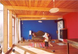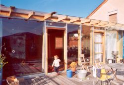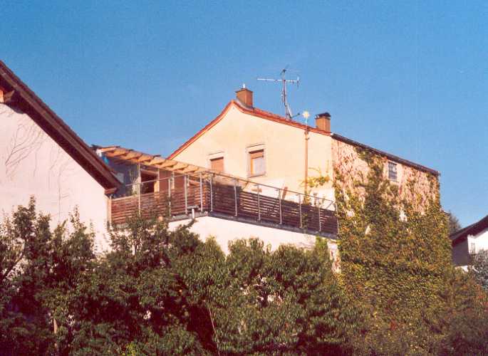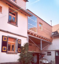 Home | Wir über uns | Projekte | Kontakt "Lottehaus" Brensbach-Nieder-Kainsbach, Affhöllerbacher Straße Kennzeichen: Um- und Anbau fürs Kind - Holzbau als "schwebende" Konstruktion - Bestand, Wohnhaus (1928) mir ehemals kleiner Landwirtschaft - Dach des vorh. Lager´s wird zur Dachterrasse, mit Wohnraum überbaut - Erweiterung des Wohnraumes im 1. OG - grosse Dachterrasse als Ausgleich für Geschosswohnlage - Holzofenbeheizung - passive Sonnennutzung, große Südwest-Glasflächen - ökologische Bauweise - Energieeffizienz - Farbenfreude |