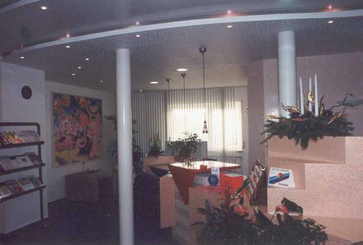 Home | Wir über uns | Projekte | Kontakt Volksbank Zweigstelle Reinheim Reinheim, Darmstädterstraße 13 Kennzeichen: Umbau - Erdgeschoss als Bankbereich - mit Schalter- und Publikumsbereich - Fassadenneugestaltung - Planung der gesamten Inneneinrichtung - Sandsteinsäulen mit Sandsteinfassade - Stahlkonstruktion als Vordach mit Medienträger |