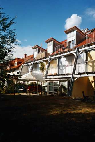 Home | Wir über uns | Projekte | Kontakt Wohnanlage Groß-Umstadt Groß-Umstadt, Santo-Tirso-Ring Kennzeichen: - Wohnanlage mit 8 Wohnungen - Erweiterungsbereiche nach Süden - 2-Geschossig mit Gaupen - Steildach - Offene Treppenhäuser - Mit s.g. "Laubengang - Erschließung" - Wintergärten nach Süden als Option - Stahltragstruktur nach Süden zum optionalen Einbau von Terrassen und Wintergärten |